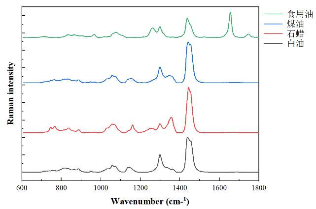 圖1 食用油、煤油、液體石蠟和白油的拉曼光譜圖