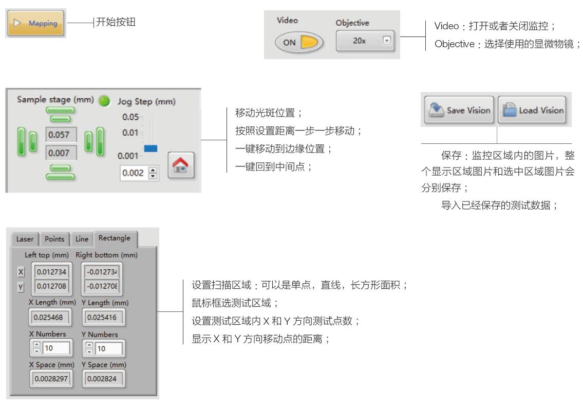 反射式/透射式LED照明 物鏡:標(biāo)配(20X, WD=7.5mm) 超長(zhǎng)工作距離 最大掃描范圍:260 x 200 μm (20x物鏡下) 位置重復(fù)性:小于1 μm 最小掃描步長(zhǎng):0.2μm 步長(zhǎng)可選范圍:0.2-30μm 激光光斑:2μm |