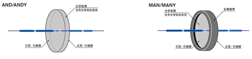 中性密度濾光片,一般分為吸收式和反射式。反射式中性密度濾光片,采用薄膜干涉的原理,將一部分光透過,而將另一部分光反射( 通常不再利用這些反射光),這些反射光容易形成雜散光而降低實(shí)驗精度,此時請使用ABC 系列光線收集器收集反射光。吸收式中性密度濾光片,一般是指材料本身或在材料中參雜某些元素后,對一些特定波長的光起到吸收作用,而對其它波長的光不發(fā)生或少發(fā)生影響。通常吸收式中性密度濾光片的損傷閾值要低一些,而且長時間使用后,可能會有發(fā)熱現(xiàn)象,使用時需要注意。